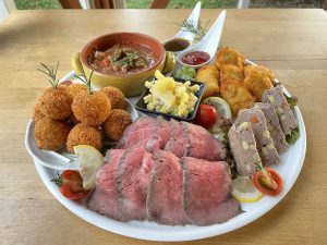 <メニュー内容>日光高原牛ローストビーフ/豚肉のトマト煮込み/自家製テリーヌ/ミートソースのアランチーニ/チキンナゲット/さつまいものマカロニサラダ※写真は盛り付けの一例です。