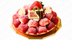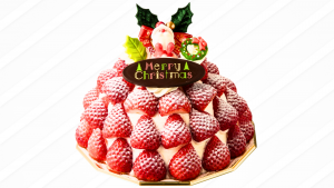 ふわふわスポンジとクリームを苺で包み込んだドーム型ケーキ。カットすると中からも大粒苺が顔を出す、新作クリスマスケーキ。