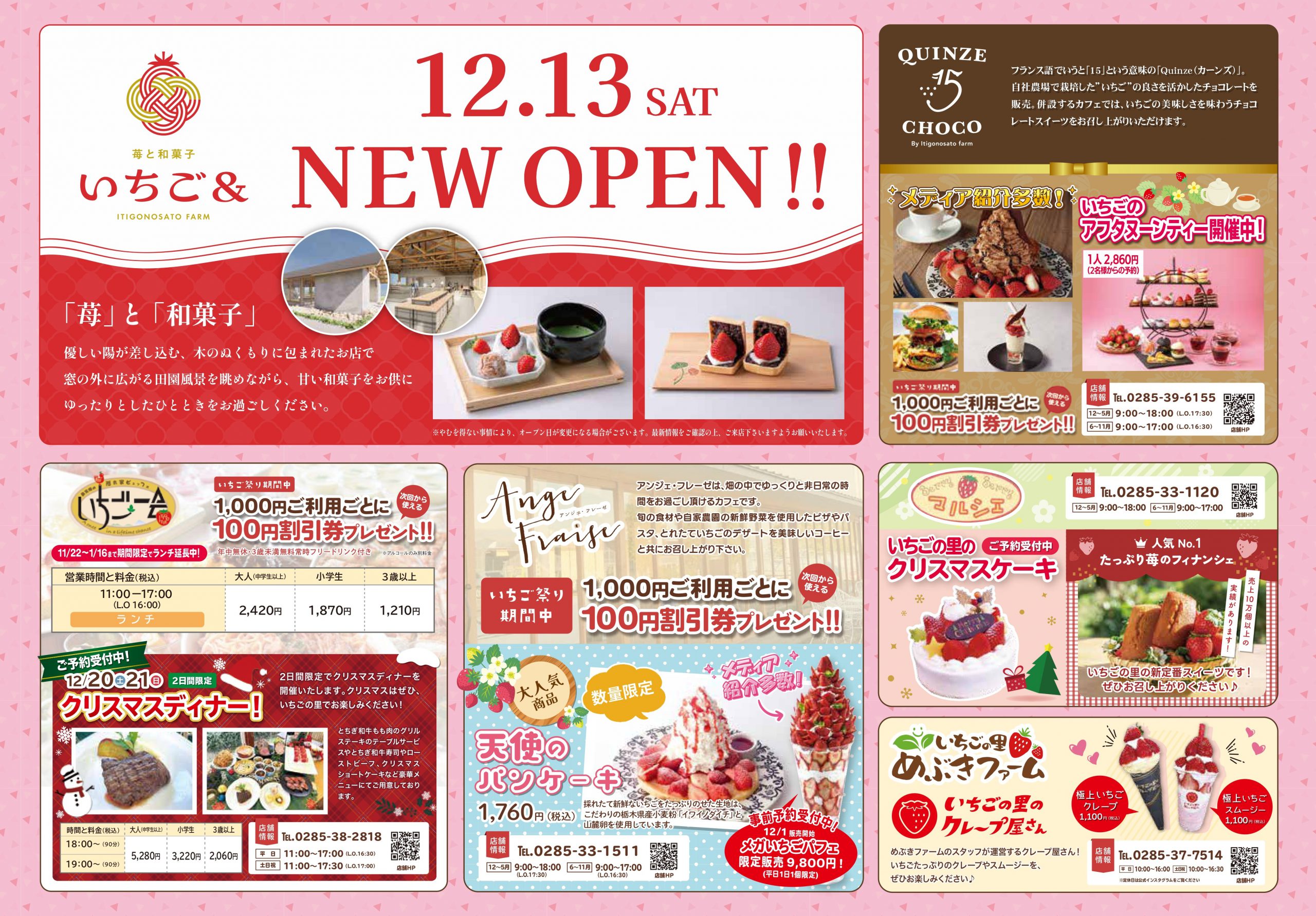 11/22㈯~24㈪ いちご祭り開催のお知らせ🍓✨ 2025.11.14 第16回 いちご祭り開催のお知らせ 開催日:11月22日(金)・23日(土)・24日(月) / 10:00~15:00 今年も恒例の「いちご祭り」を3日間限定で開催いたします。初物いちご狩り、 いちごの里タルト販売、飲食ブース、動物ふれあい、ステージイベントなど、 ご家族で一日中お楽しみいただける内容をご用意しております。皆さまのご来園を心よりお待ちしております。 いちご祭りチラシ(表面) いちご祭りチラシ(裏面)